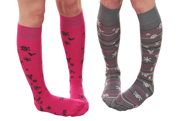 KNEE-LENGTH SOCKS (grey stripes or raspberry)